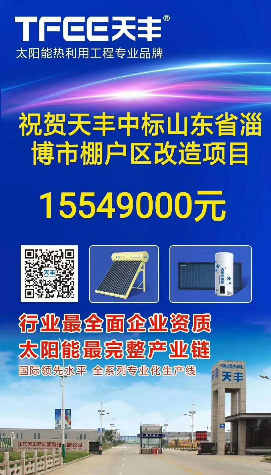 在太陽能熱水器行業(yè)的大河中,天豐人始終保持著“咬定青山不放松”的執(zhí)著,胸懷著“越是艱險越向前”的膽魄。值此國慶佳節(jié)來臨之際,工程部傳來捷報:天豐太陽能中標淄博經(jīng)開棚戶區(qū)1500余萬元的改造項目。(慶祝的表情)(捷報照片)