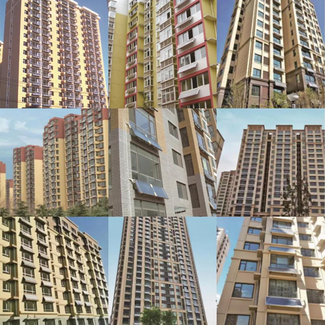 在高聳的居民樓上,共安裝了3713套天豐陽臺(tái)壁掛太陽能,一排排平板集熱器美觀又整齊,與建筑融合,在小區(qū)內(nèi)形成了一道靚麗的風(fēng)景線。