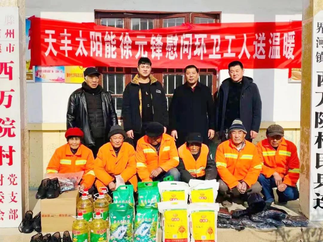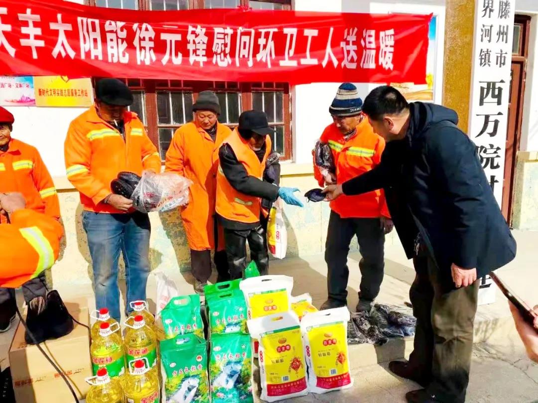 近日寒潮來襲、氣溫驟降,環(huán)衛(wèi)工人作為城市的美容師,每天起早貪黑,用自己辛勤的汗水維護(hù)著干凈整潔的市容環(huán)境,為了表達(dá)對(duì)環(huán)衛(wèi)工人辛苦付出的感謝,切實(shí)關(guān)心關(guān)愛環(huán)衛(wèi)工人冷暖,2021年1月14日,天豐優(yōu)秀代理商徐元鋒趕赴滕州,在嚴(yán)寒之際為環(huán)衛(wèi)工人送去了特別的“溫暖”。