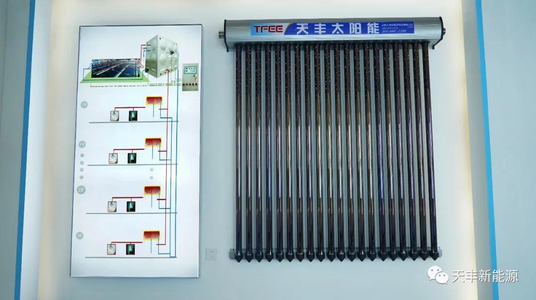 從“煤改清潔能源”到“碳達(dá)峰碳中和”,天豐也一直在為打贏藍(lán)天保衛(wèi)戰(zhàn)助力,除了在戶式、樓盤配套、大型集熱工程等市場發(fā)力之外,也在不斷探究光熱應(yīng)用的新領(lǐng)域。在2019年,推出天豐太陽能采暖專用機(jī),末端可搭配空氣源熱泵、電熱鍋爐、生物質(zhì)顆粒爐作為輔助熱源,以達(dá)到采暖的目的,當(dāng)陽光不足時(shí)自動(dòng)啟動(dòng)輔助能源部分,保證24小時(shí)提供恒溫供暖。